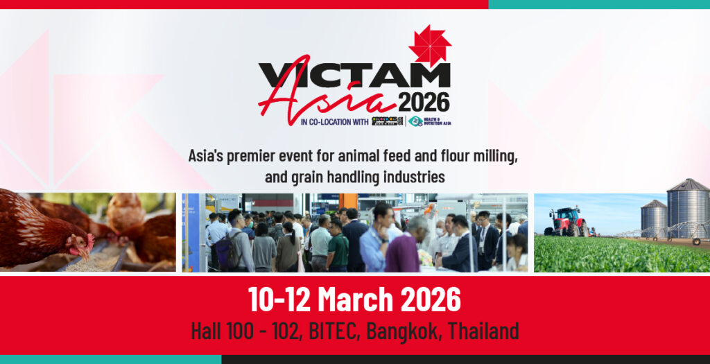 VICTAM Asia 2026, co-located with VIV Health & Nutrition Asia and GRAPAS Asia 2026, will once again serve as the region’s total exhibition for the animal feed and grain processing industries. Together, these three exhibitions form the total animal feed and health event in Asia Pacific, uniting the full value chain from feed production, flour and rice milling technology, to innovation in nutrition, pharmaceuticals, and high-tech animal health solutions. The event will be held from March 10 – 12, 2026, at the BITEC Exhibition Center in Bangkok, Thailand.
