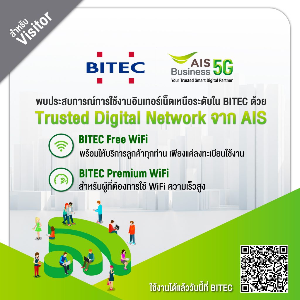 At BITEC, we have free, fast WiFi which is suitable for browsing, social media, and email. When you arrive at the venue, you just need to sign in @BITEC_FreeWIFI