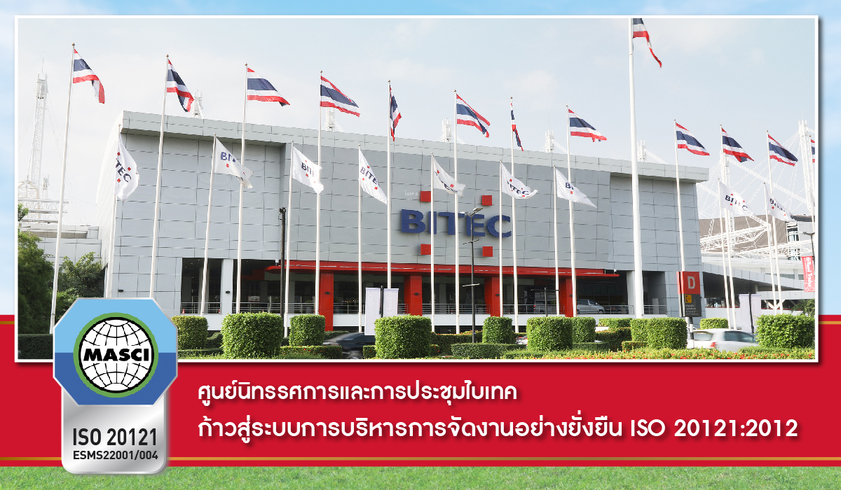 ด้วยความมุ่งมั่นและทุ่มเท รวมถึงการมีส่วนร่วมของบุคลากรทุกระดับ ที่ส่งเสริม สนับสนุนการดำเนินงานในการยกระดับการพัฒนาคุณภาพการให้บริการ จึงทำให้ศูนย์นิทรรศการและการประชุมไบเทค ได้รับการรับรองมาตรฐานระบบการบริหารการจัดงานอย่างยั่งยืน ISO 20121:2012 (Event Sustainability Management Systems: ESMS) ให้การรับรอง (Certifications) โดยสถาบันรับรองมาตรฐานไอเอสโอ อุตสาหกรรมพัฒนามูลนิธิ สถาบันเครือข่ายของกระทรวงอุตสาหกรรม (สรอ.) (MASCI) ตั้งแต่วันที่ 24 มิถุนายน 2565 ถึง วันที่ 23 มิถุนายน 2568 เป็นเครื่องยืนยันได้ว่า เป็นองค์กรที่มีศักยภาพของสถานที่จัดงาน และมุ่งเน้นประเด็นด้านความยั่งยืนอย่างแท้จริง