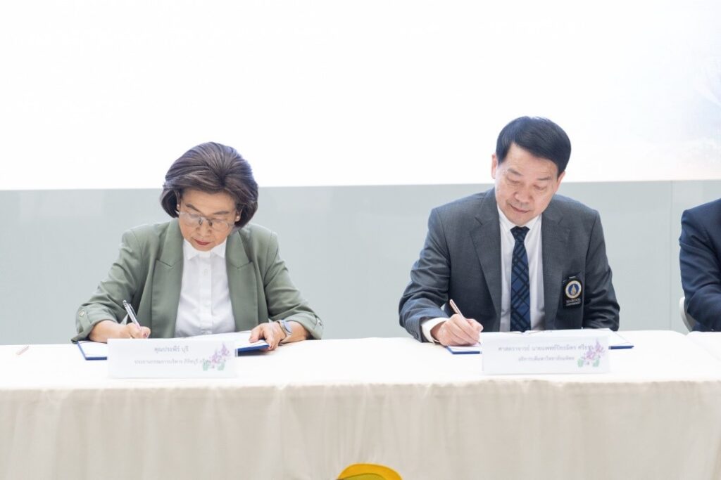 พิธีลงนามบันทึกข้อตกลงความร่วมมือด้านวิชาการ เรื่องการพัฒนาสมาการ์เด้นเป็นพื้นที่เรียนรู้และส่งเสริมสุขภาวะให้กับชุมชนโดยรอบไบเทคบุรี